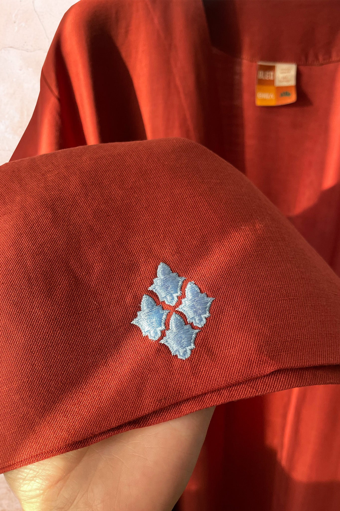 "The perfect abaya doesn't exi..." – Introducing our Zellige Abaya. We could talk about this fabric for hours, but it's best to experience the magic for yourself. Made from 100% natural Tencel and linen, it's breathable, soft but sturdy and has a subtle sheen that makes it perfect for casual everyday wear, work, or even dressing up for a special occasion—all year round. Four intricately embroidered miniature zellige pieces rest like gems on each sleeve. The color, inspired by Moroccan soil, is complemented by light blue accents, reminiscent of the fabrics worn by the Tuareg people to stay cool.